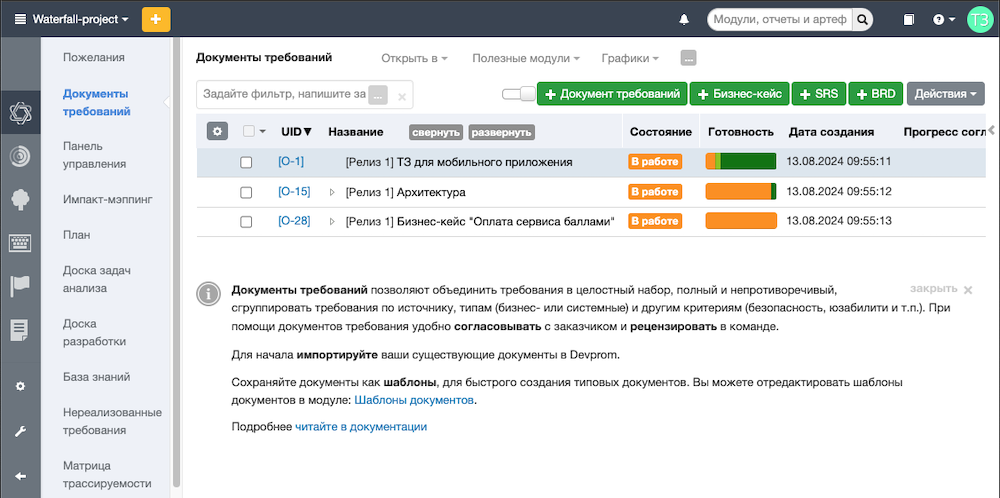 Удобные инструменты для проработки требований для всех видов процессов
