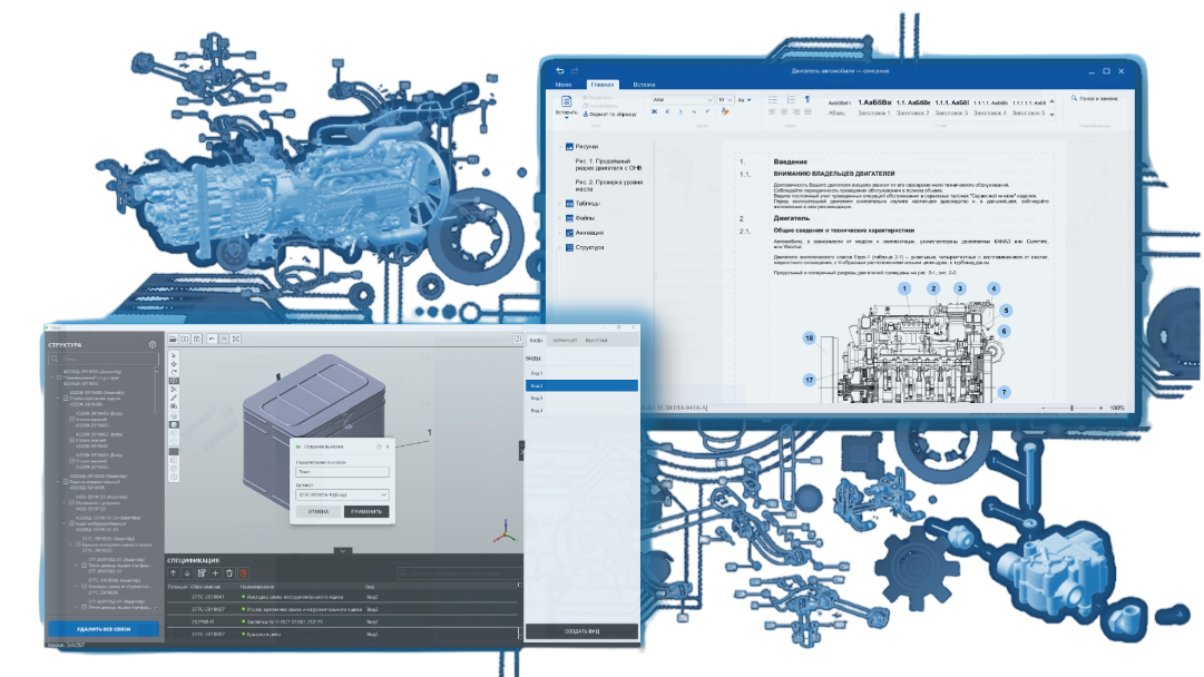 Профессиональное ПО для создания интерактивной электронной документации в соответствии с национальными и международными стандартами, включая технические руководства, каталоги запасных частей, инструкции по эксплуатации и ремонту, а также обучающие материалы.