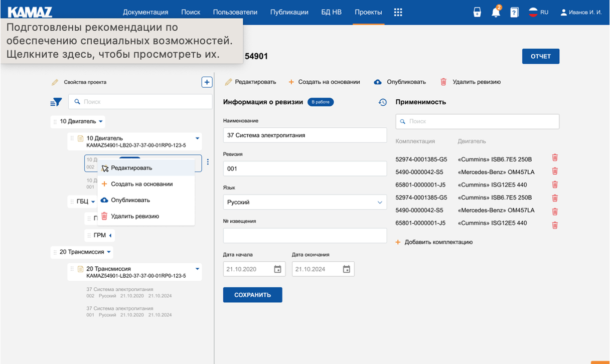Редактор позволяет создавать структурированную мультимедийную документацию с поддержкой 3D-моделей, схем и интерактивных элементов и распространять ее через портал «Guide KAMAZ 2.0» и другие порталы, которые используют модель данных S1000D или в соответствии требований ГОСТ 2.621-2024 «ЕСКД. Электронная эксплуатационная документация. Формат данных».