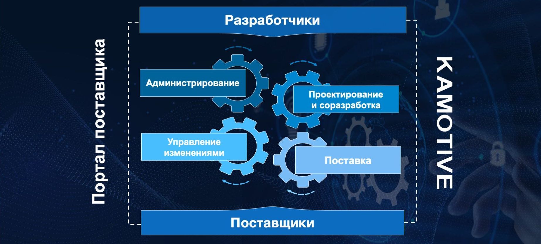 Цифровая платформа Kamotive контролирует распределенные проекты и их части благодаря единому сквозному бизнес-процессу обмена цифровыми данными, а также широкому спектру инструментов для мониторинга изменений и формирования планов-графиков. Kamotive сводит результаты деятельности всех участников процесса совместной разработки в единую систему и организует целостный проектный подход к управлению деятельностью предприятия на всех уровнях планирования. В ходе реализации проекта по созданию ЦП Kamotive разработчикам удалось успешно импортозаместить один из модулей существующей зарубежной PLM-системы — Teamcenter, задачей которого как раз и является обмен инженерными данными между компанией-заказчиком и поставщиком. За управляемую и защищенную передачу данных от одной компании в другую в Kamotive отвечает функционал Портал поставщика, который включает модули Соразработка и Поставка.