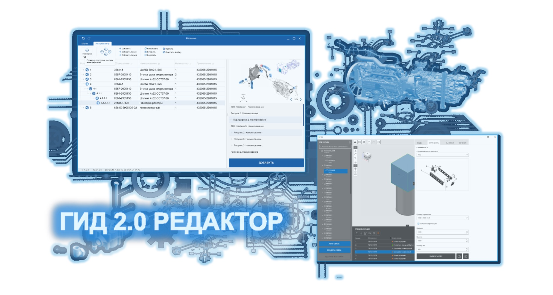 Как эффективно создавать и редактировать электронную эксплуатационную и ремонтную документацию с учетом использования различных форматов данных и необходимости их интеграции с системами PLM/CAD? Для решения этой важнейшей задачи наши специалисты разработали новый программный продукт, предназначенный специально для отечественных предприятий – КАМАЗ ГИД 2.0 Редактор. Это профессиональное ПО позволяет легко создавать интерактивную электронную документацию с поддержкой 3D-моделей, схем и интерактивных элементов, включая технические руководства, инструкции по эксплуатации и ремонту, каталоги запасных частей и обучающие материалы.